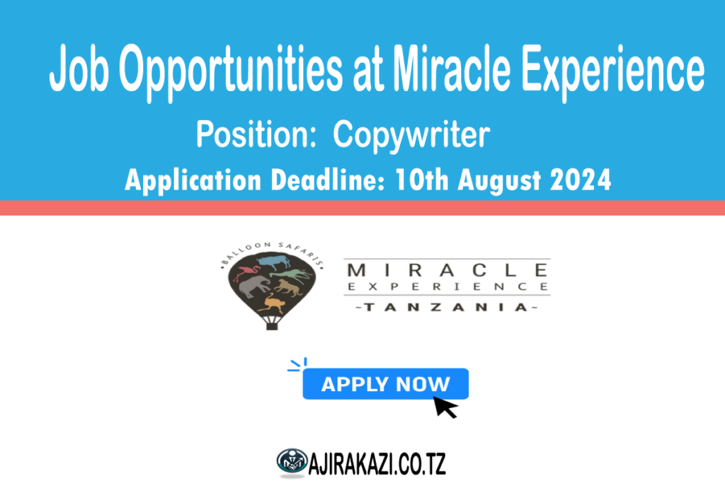 Applicants are requested to enclose a detailed CV together with cover letter to; recruitment@miracleexperiece.co.tz